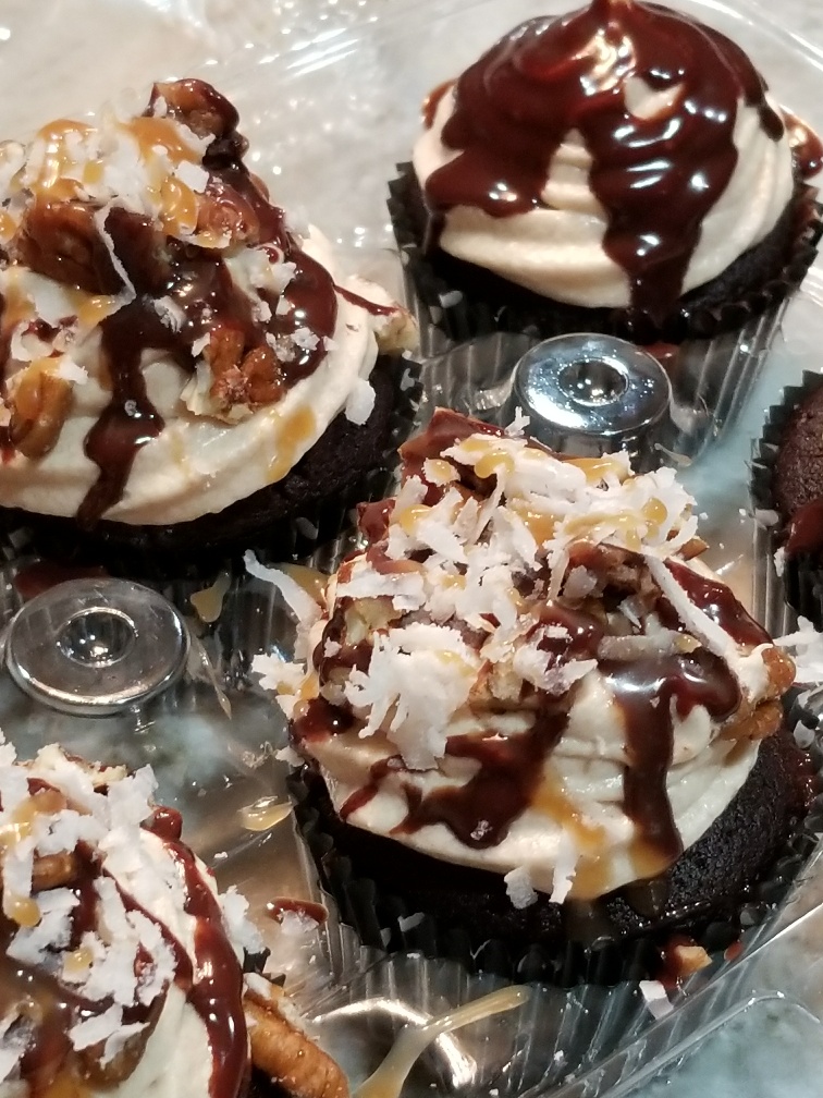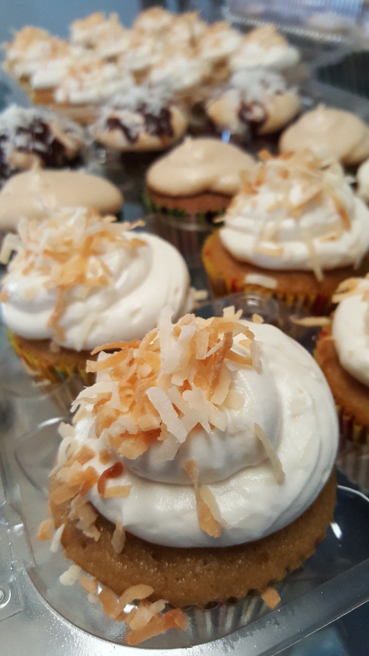 Ahhh, apple spice. Someone selected, washed, peeled, diced and spiced those firm, fresh apples perfectly for you, then baked them inside a handcrafted spiced cupcake batter, before topping it with a rich and silky caramel cream cheese frosting. Don’t even get me started on the Signature Snickerdoodle cake. You gotta be there to understand. And no, I did not stick a cookie in or under a cake. I do, however, make my own cookie dough cheesecake crust.